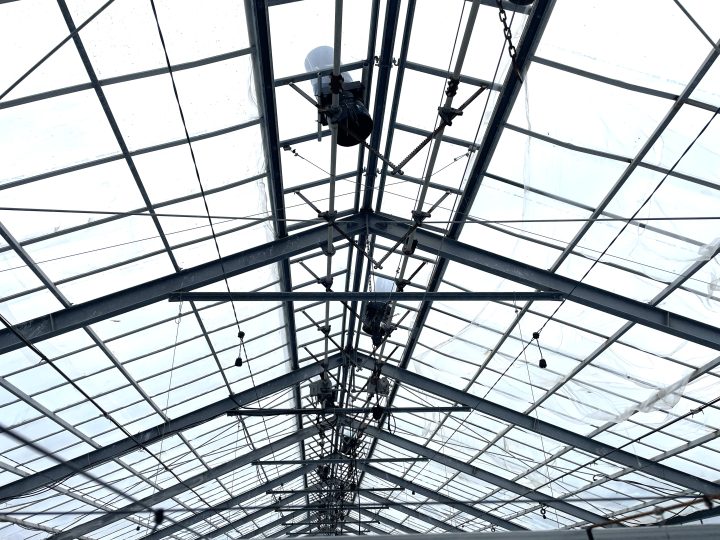 倉田さん そうですね。当社のハウスは全棟に天窓がついているのですが、天窓だけでは暑い空気を抜けきれません。空動扇を導入してからは天窓は使用せず、空動扇と妻面電動換気扇の両方で換気しています。
